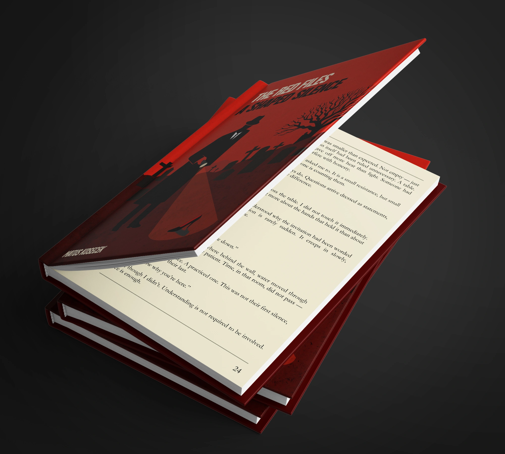 The design uses a strict black-and-red color palette to build a mysterious, ominous, and slightly threatening mood — red for blood, danger, and drama, black for shadows and secrecy.