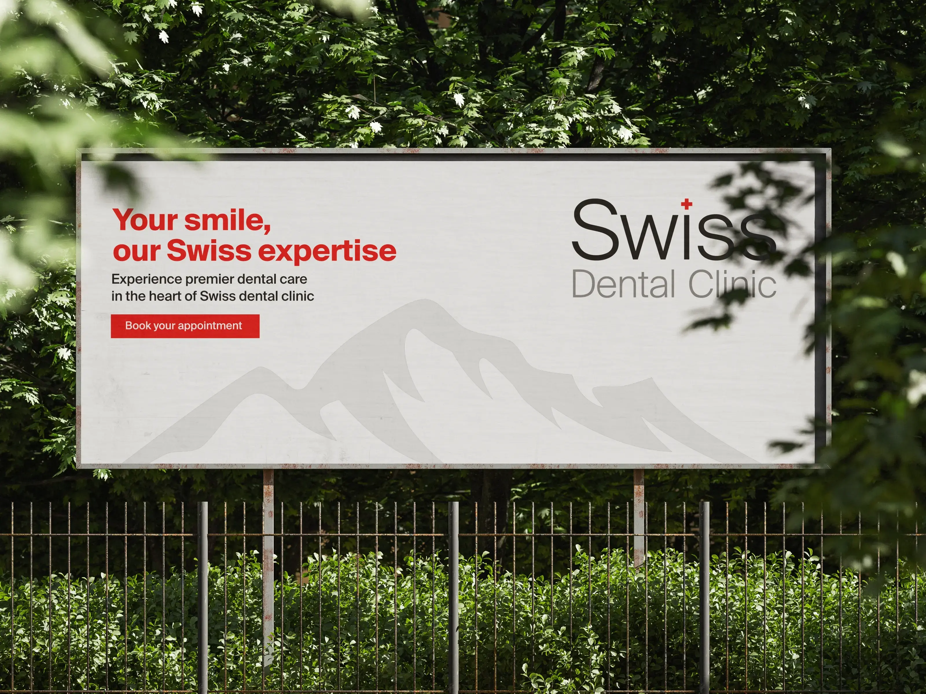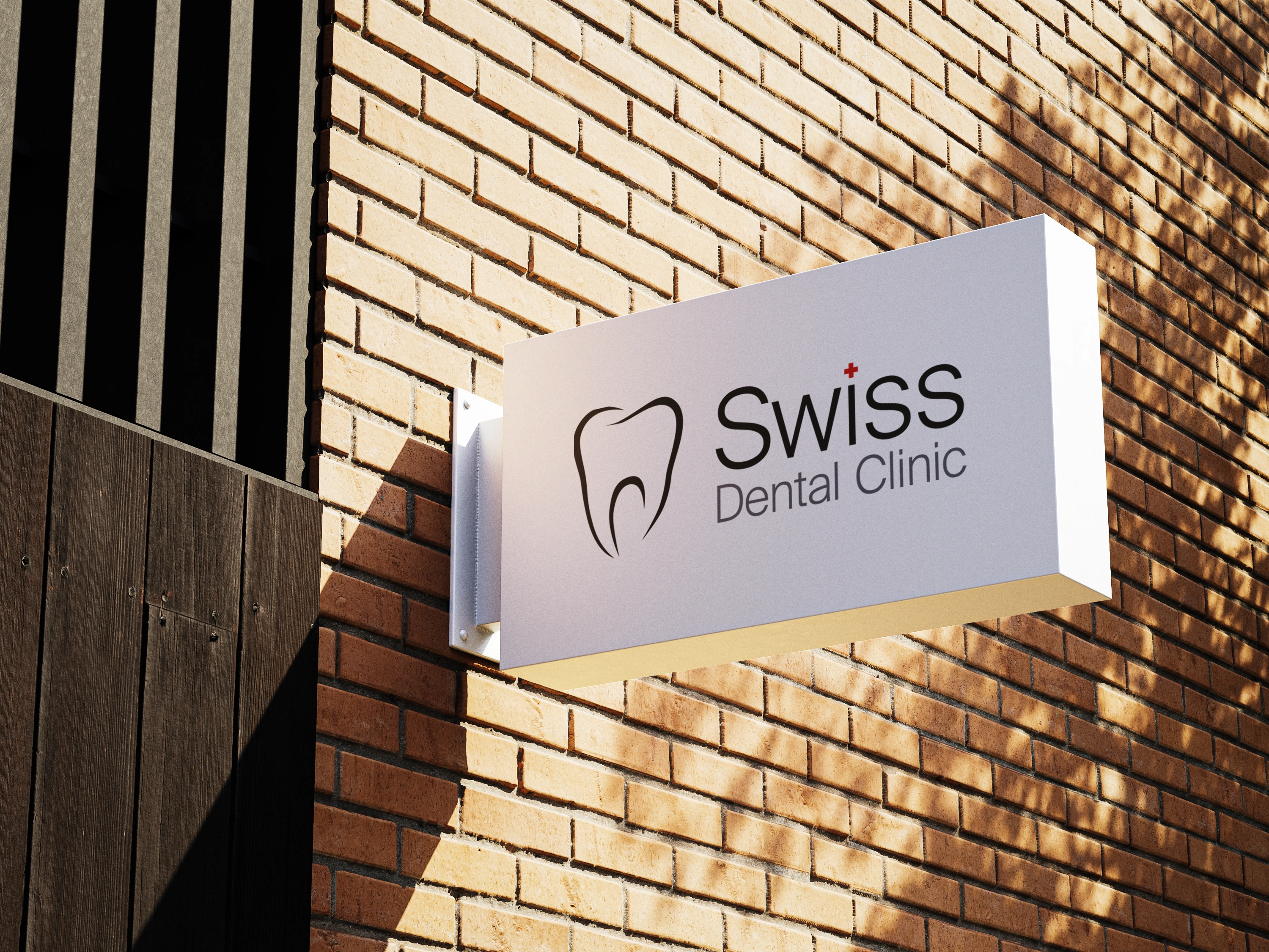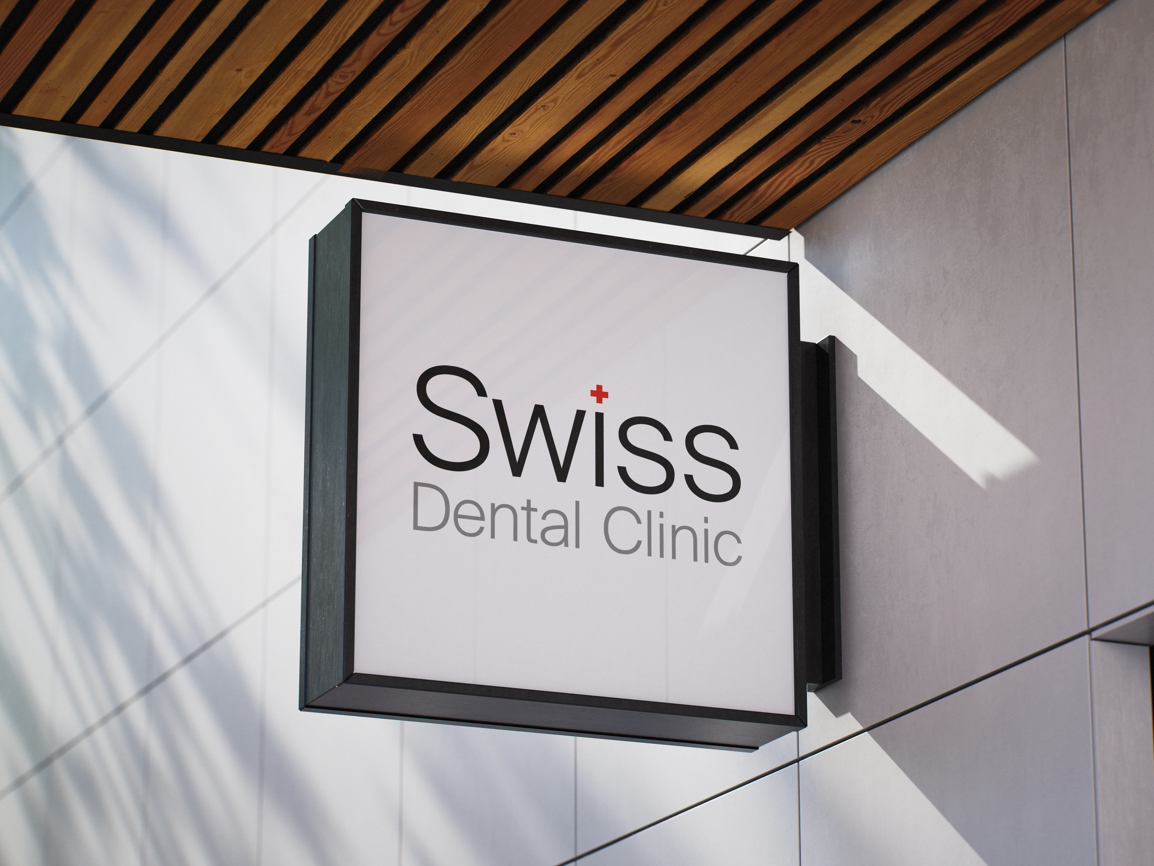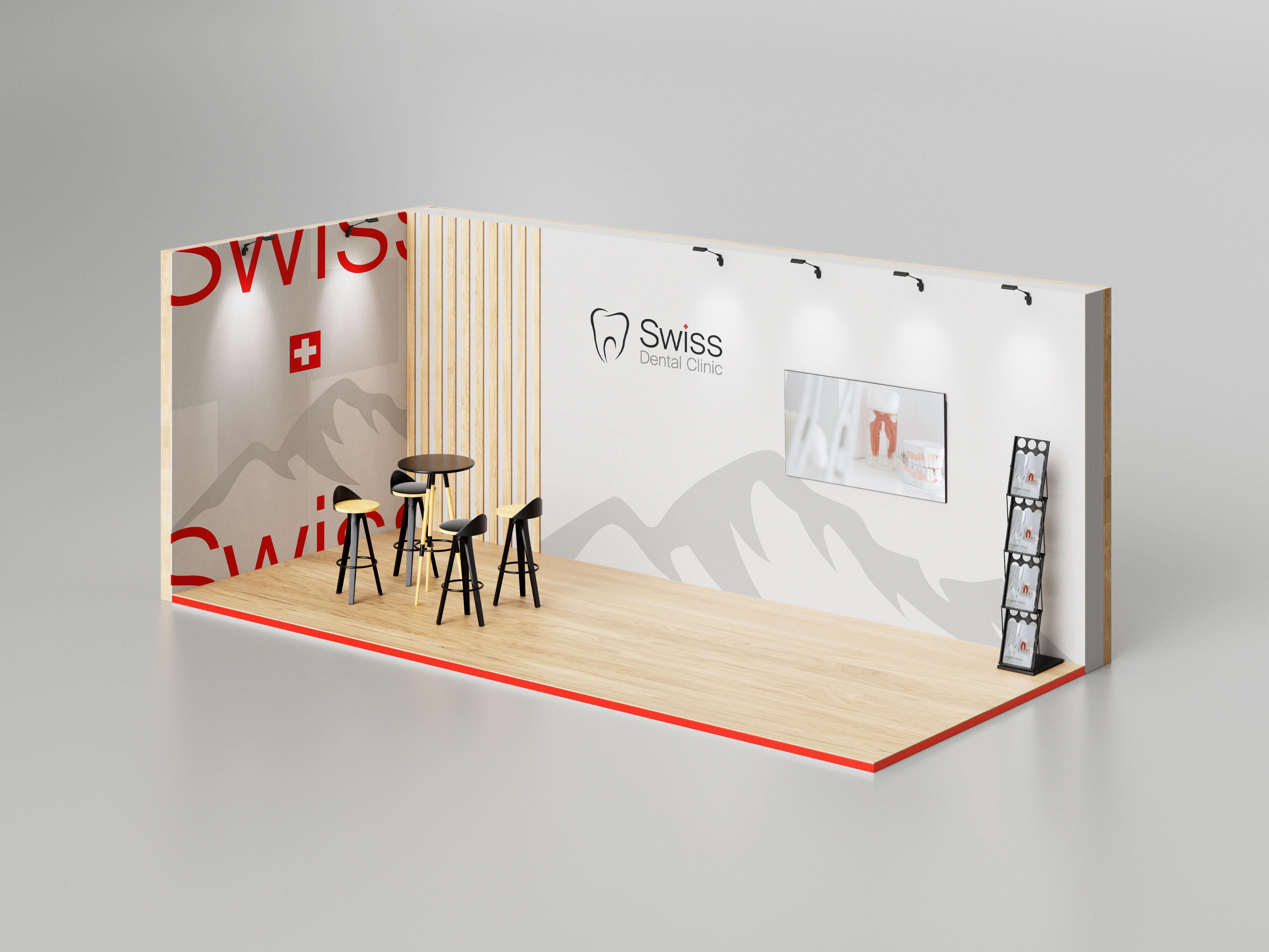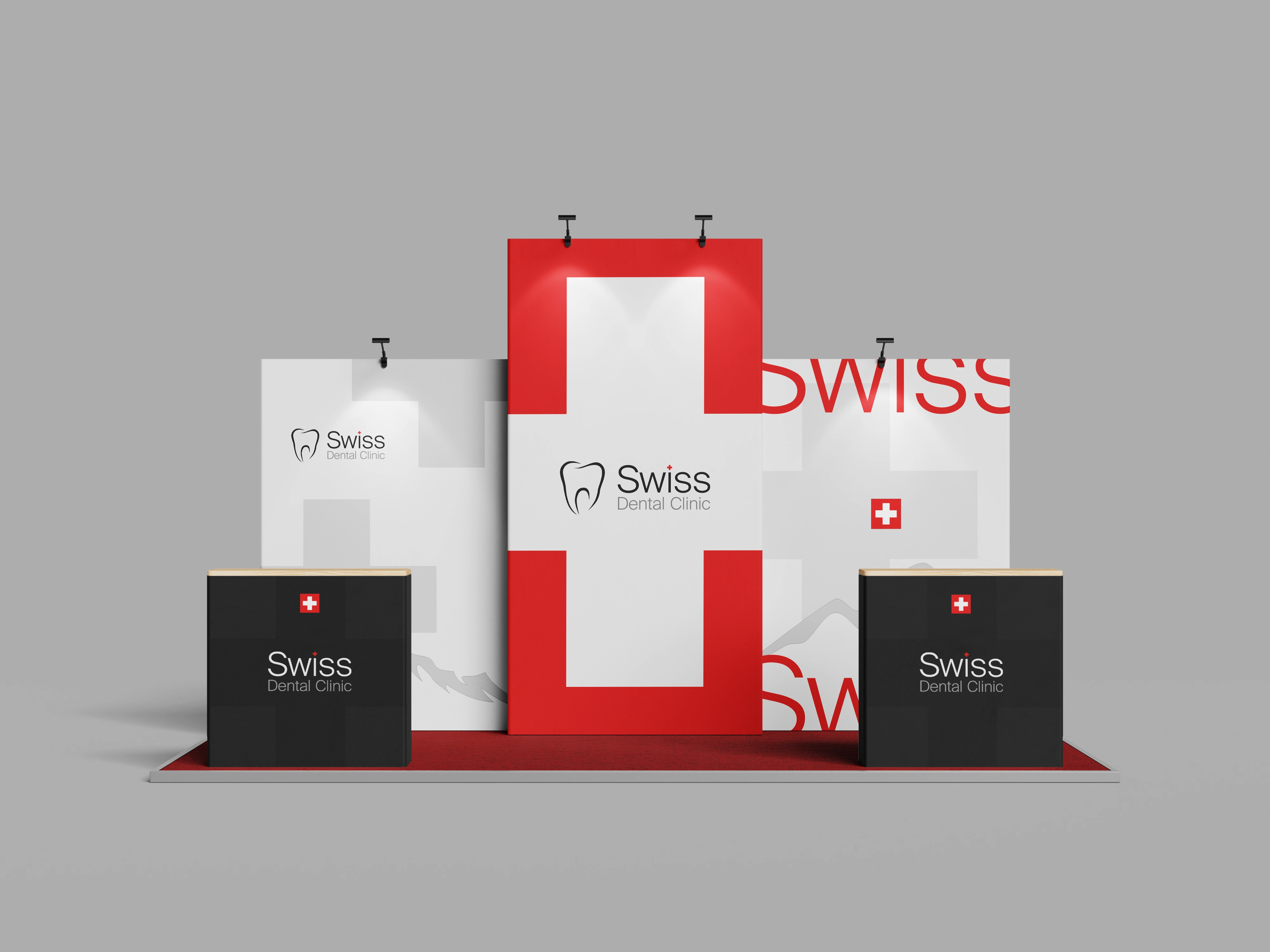 The palette of white and gray provides a clean, hygienic foundation, while Swiss Red is used sparingly as a premium accent to guide attention and enhance brand credibility.
